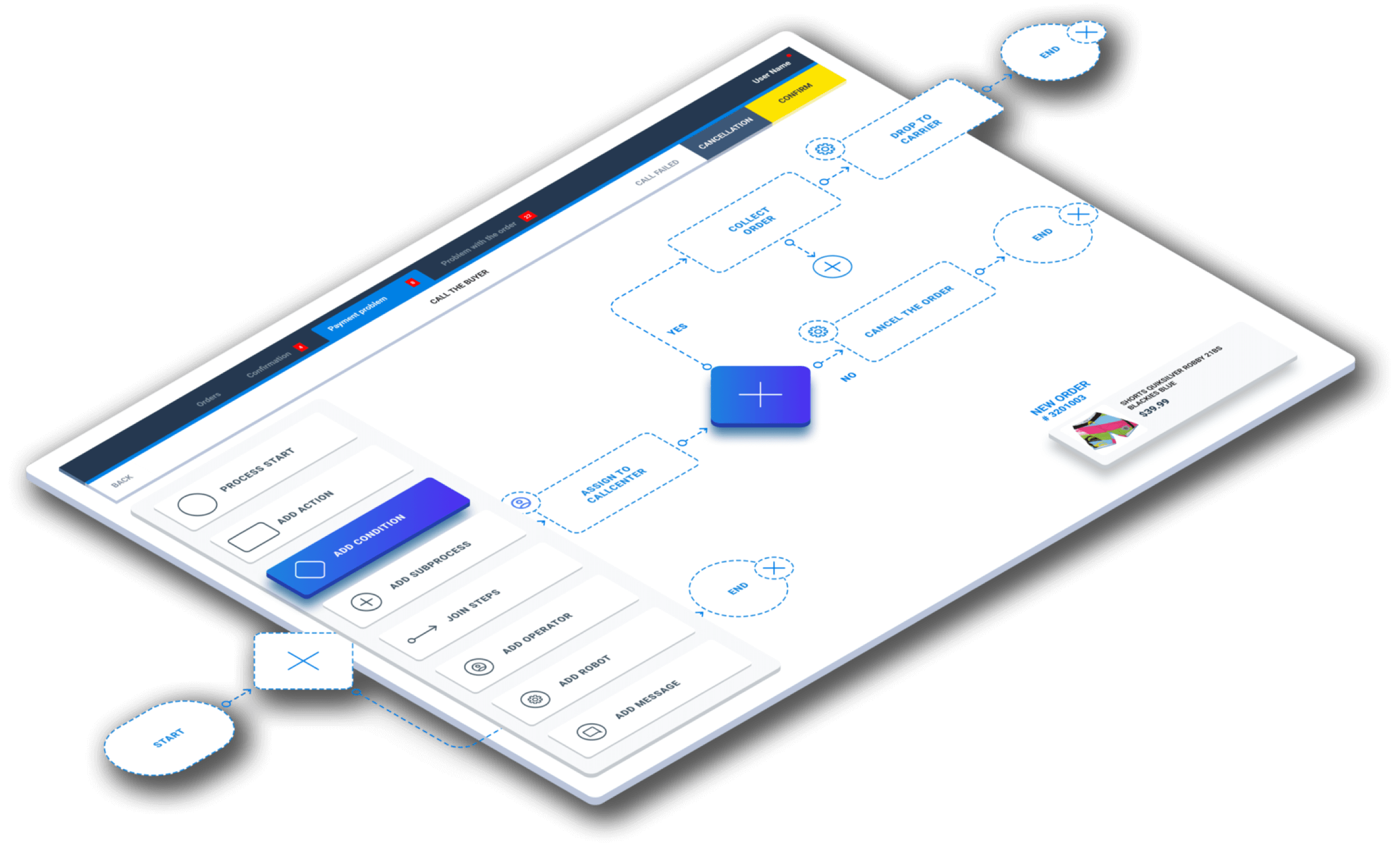 Unlimited customisation of processes based on available data - orders, customers, from any external systems.